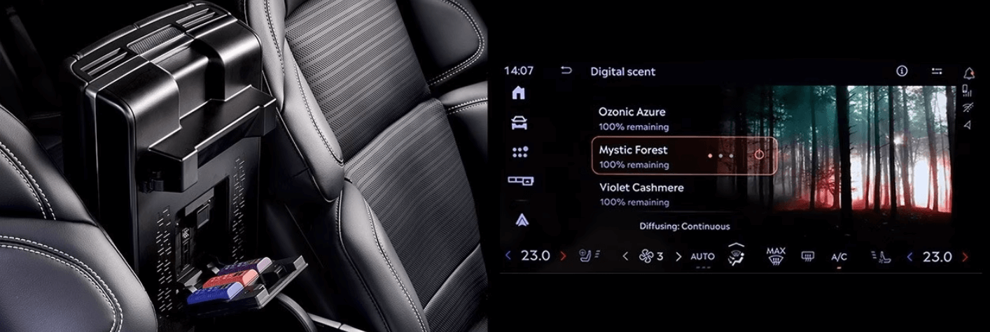 디스플레이에서 볼 수 있는 선명한 고해상도 애니메이션은 다양한 분위기를 연출하며, 디지털 방식의 다양한 향(Digital Scents)은 탑승자의 감각을 풍부하게 만족시켜 줄 향기가 포함된 카트리지를 제공하고 있습니다.