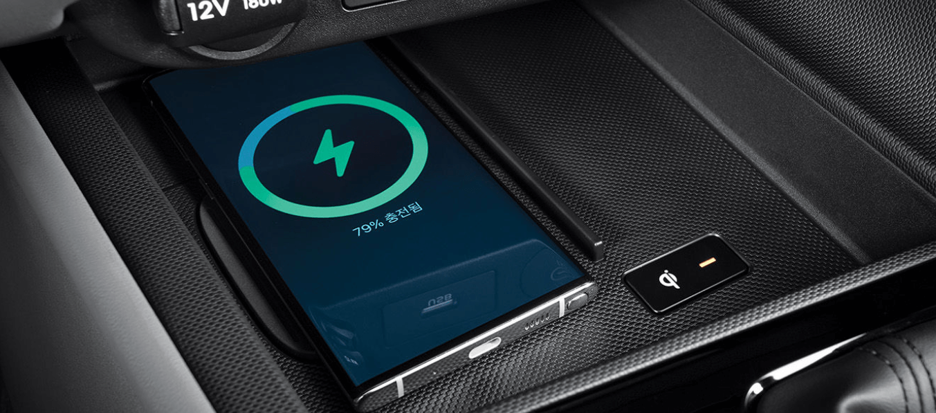 중앙 콘솔에 휴대폰 무선 충전을 위한 시스템이 적용되어 있습니다.