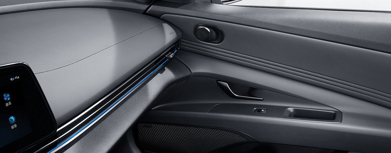 차량 도어의 몰딩 부분 소재를 크룸으로 적용하여 고급스러운 감성을 전달합니다.